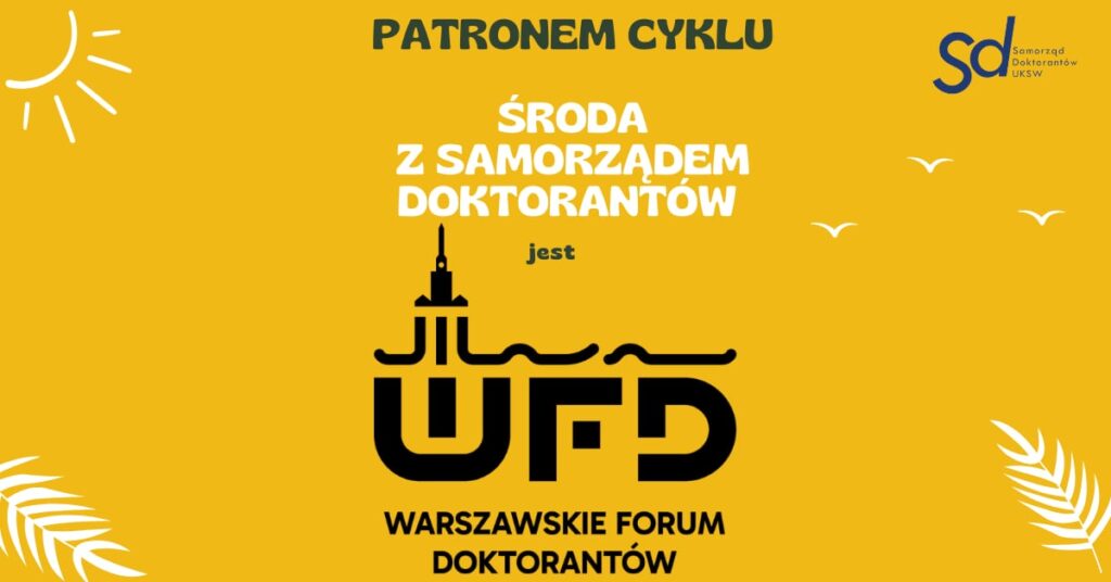 Warszawskie Forum Doktorantów z dumą objęło patronatem wyjątkową inicjatywę organizowaną przez Samorząd Doktorantów UKSW – cykl webinariów „Środa z Samorządem Doktorantów”. To doskonała okazja, by poszerzyć swoją wiedzę, zdobyć inspirację oraz uczestniczyć w interesujących dyskusjach z ekspertami w swoich dziedzinach. 🔹 Co nas czeka?W ramach cyklu odbędą się dwa inspirujące spotkania online, które poświęcone będą […]