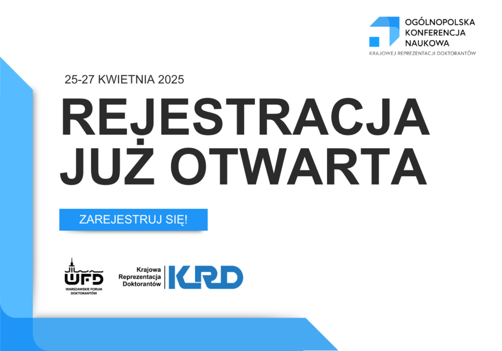 Doktoranci z całej Polski, to już pewne – w dniach 25–26 kwietnia 2025 r. w Warszawie odbędzie się II Ogólnopolska Konferencja Krajowej Reprezentacji Doktorantów (KRD)! To wydarzenie, które stanowi doskonałą okazję do wymiany doświadczeń, prezentacji wyników badań i dyskusji na temat przyszłości środowiska doktoranckiego w Polsce. Dlaczego warto wziąć udział? Konferencja KRD to nie tylko […]