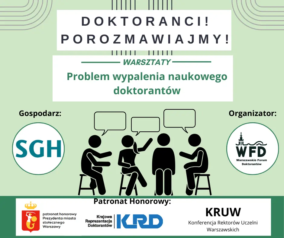 29 października 2024 r. w Szkole Głównej Handlowej w Warszawie odbyły się warsztaty organizowane przez Warszawskie Forum Doktorantów w ramach projektu DOKTORANCI PorozmawiajMY! Tematem spotkania było wypalenie naukowe doktorantów oraz sposoby radzenia sobie z codziennymi wyzwaniami pracy naukowej, stresem i poczuciem przytłoczenia obowiązkami.